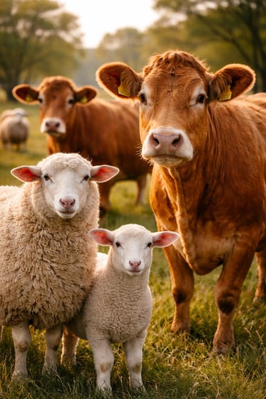 Criamos bovinos e ovinos com cuidado e responsabilidade, destinados principalmente à venda para engorda. O nosso trabalho baseia-se no respeito pelo bem-estar animal, na qualidade genética e numa gestão sustentável das pastagens.